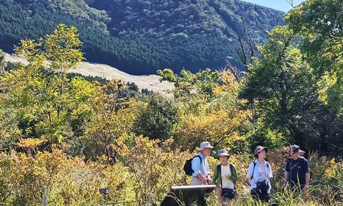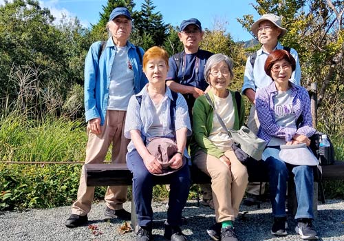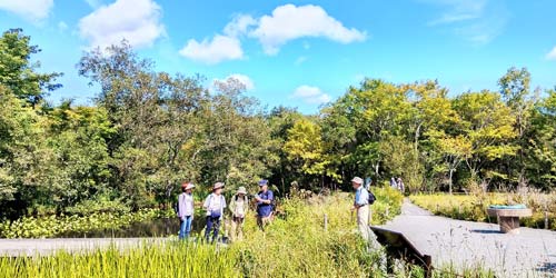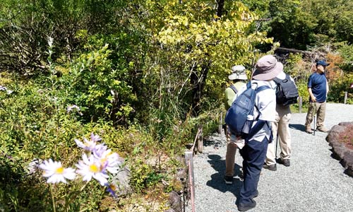 初秋の湿生花園バックに全員集合
